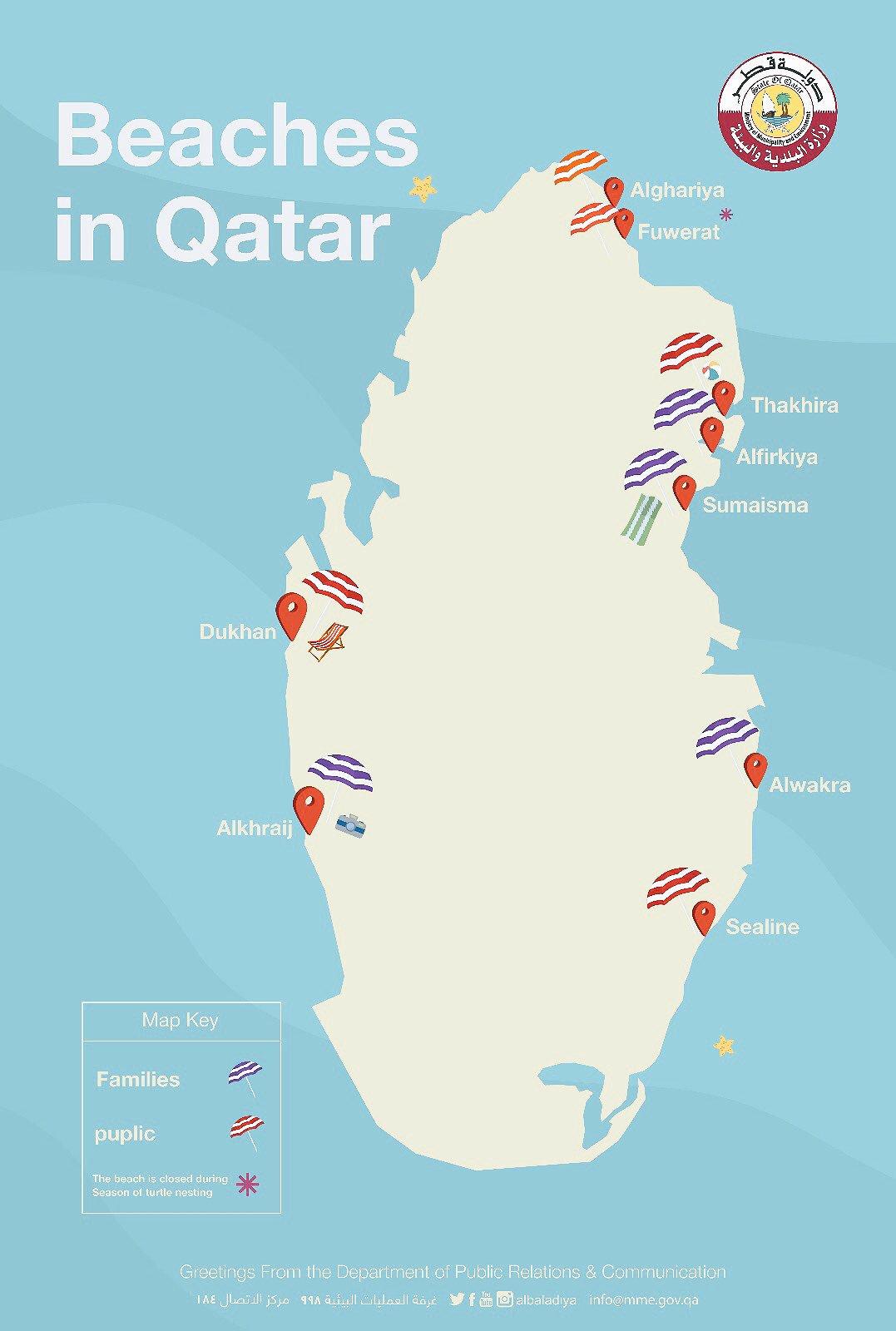 海滩在卡塔尔的地图